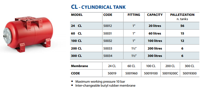 | CYLINDRICAL TANKS | 24CL, 60 CL, 100 CL, 200 CL, 300 CL |